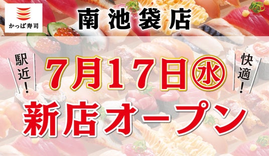 コロワイドグループのかっぱ寿司(カッパ・クリエイト(株) 本社:神奈川県横浜市、代表取締役社長:山角豪)は、2024年7月17日(水)に「かっぱ寿司 南池袋店」をオープンします。