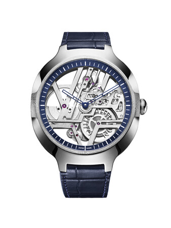 ルイ・ヴィトンのスタイル・コードを体現するために作られた「ヴォヤジャー スケルトン」は、メゾンのデザインコードを具現化したもの。「ヴォヤジャー」ならではの独特なケースは、機械式の傑作であるキャリバーLV 60を収めています。ルイ・ヴィトンのいくつかのフラッグシップストアのダイナミックで意図の込められた建築や、フォンダシオン ルイ・ヴィトンの幻想的なフォルムを連想させるスケルトン・ムーブメントです。
