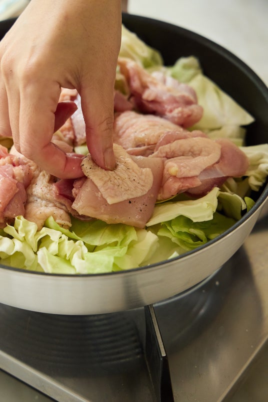 ☑フライパンに材料を重ねて火にかけるだけ!手順はびっくりするほどカンタン!!
