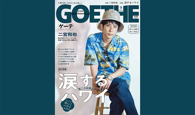 仕事に遊びに一切妥協できない男たちが、人生を謳歌するためのライフスタイル誌[ゲーテ]9月号が7月25日に発売となる。総力特集は「涙するハワイ」。誰しもの心の故郷ともいえるハワイをどこよりも早く、アップデートしたハワイ情報を一挙に紹介する。そのほか、二宮和也のインタビューやゲーテ公式ECサイト「ゲーテストア」限定アイテムも必見!