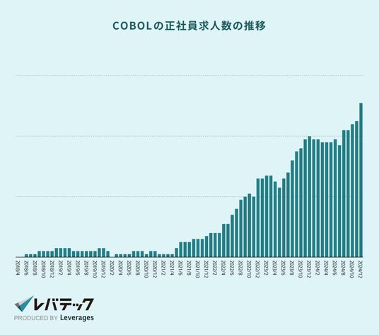 また「COBOL」に関しても、直近2年で求人数が約2倍になっています。レガシーなシステムのマイグレーションやモダナイゼーションの需要が高まり、現状のCOBOLのシステムを読み解くことができる人材のニーズも増加しているようです。