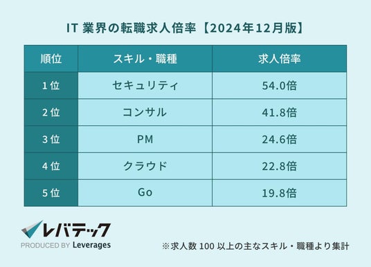- 転職求人倍率1位は「セキュリティ」、約50倍に届く