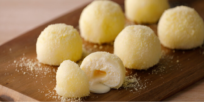 ジャージーミルクソースとレアチーズムースを包み込んでいるのはもっちり食感の餅生地です。