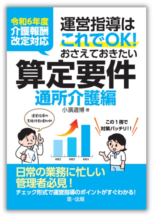 法律関連出版物、各種データベースを提供する第一法規株式会社(所在地:東京都港区、代表取締役社長:田中 英弥)は『令和6年度介護報酬改定対応 運営指導はこれでOK!おさえておきたい算定要件【通所介護編】』を2024年8月30日に発刊いたしました。