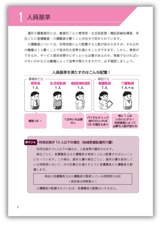 複雑で分かりづらい人員・利用者のカウントや、「常勤」、「兼務」等の考え方について、文章だけでなくイラストを用いて分かりやすく解説!