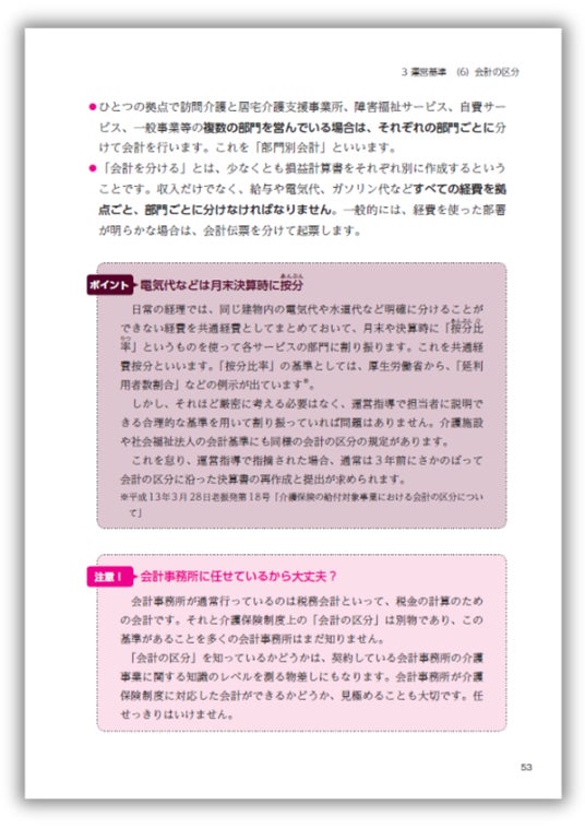 各項目ごとにおさえておきたい「ポイント」や、ついやってしまいがちだけど本来気をつけなければいけない「注意点」を介護経営コンサルタントの視点から説明!