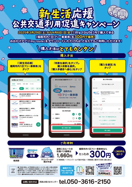 「新生活応援キャンペーン」を実施することで、福岡で新生活を始める皆さまに西鉄バスをご利用いただき、福岡市内の交通利便性を感じていただくとともに、「my route」で提供できるシームレスな移動を体験いただければと考えております。