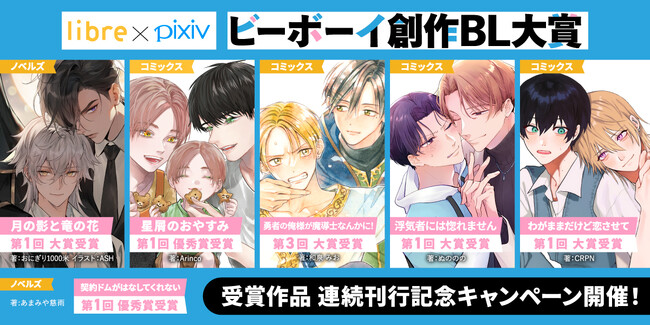 株式会社リブレ(本社:東京都新宿区、代表取締役社長:太田歳子)は、大手投稿サイト「pixiv」とタッグを組んだ創作BLコンテスト「ビーボーイ創作BL大賞」受賞作品の単行本発売に際し豪華キャンペーンを開催いたします。