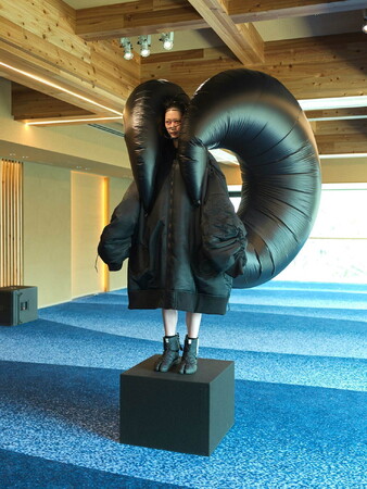 2022FWに発表したコレクション「Different Dimension(異次元)」。「風と布」をテーマに、ナイロンやポリエステルを使用した高密度織物である「布」を使って仕立てたドレスで、目に見えない「風」を認知させる、実験的なプレゼンテーションを実施しました。また、その際に展示したドレスをスキャンしてデジタルデータ化し、NFT(ブロックチェーン証明書)に紐付けて販売するという「モノ→デジタルへの変換」という新たなプロセスにも挑戦しました。(現在は販売終了)今回は、そんなアートピースの中から数体を展示します。風がかたどる布による巨大な作品をぜひご覧ください。