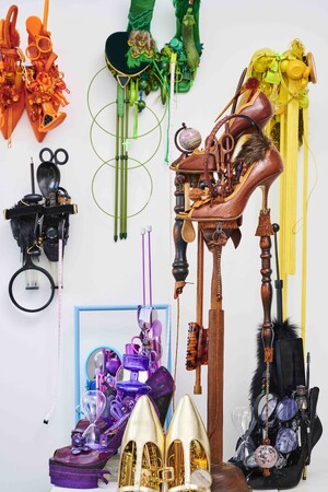 制作は、物、空間、言葉と出会うことから始まる。身の回りにある既製品、誰かの思いや考えが反映されたもの、場所を移し時を経たものなどの何かであるものを、集めて組み合わせる手法“アッサンブラージュ”で制作。着彩はしないで、素材そのままの色と特徴と美を活かし、彫刻的視点を用いてさまざまな物が空間的に再構築した作品を展示。昨今は「VOGUE」「REAGAL」とのコラボレーションなども手掛けています。