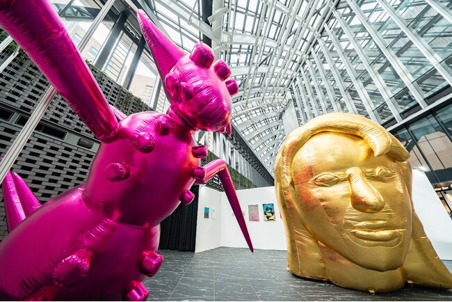 プロダンサーとしての経歴から、自身の身体性を通して環境や鑑賞者の存在、時間、空間によって変化するインタラクティブな作品を様々なメディアで制作する高遠 まき氏。「空気彫刻:ソフトスカラプチャーシリーズ」として、妖怪がテーマの「Hopeful monster」、作家自身の身体を全方位からスキャンした「GOLD FACE」の2点を展示。センサーによって身体や周囲の反応に応じてモンスターが動き、変化する様をお楽しみください。