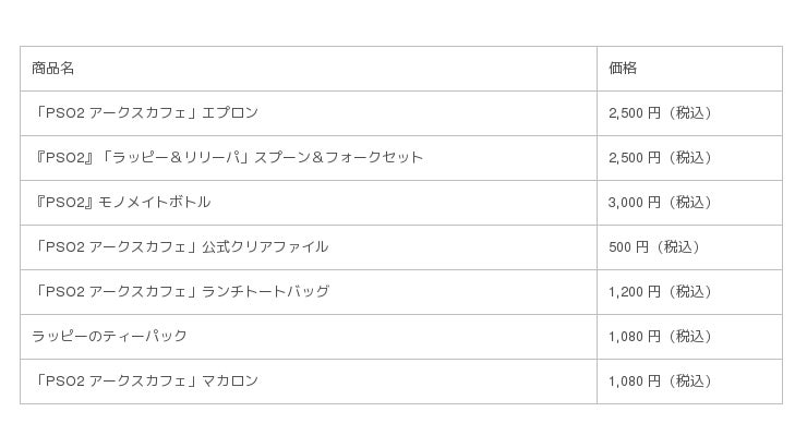 京都でのオープンとなる「PSO2 アークスカフェ」は、本日10 月2 日(金)から11 月30 日(月)までの期間限定で『PSO2』オリジナルメニューやオリジナルグッズの販売を行います。さらに『PSO2』オリジナルメニューをご注文いただいた方には各種ノベルティや、ゲーム内で使用可能な“特典アイテムコード”をその場プレゼントいたします。関西地区にお住まい『PSO2』ファンの方、期間限定のオリジナルメニューをぜひこの機会にご賞味ください。