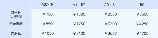 例:A2カラー半光沢紙 通常¥1700 → ¥850(税別)※出力基本料が別途かかります