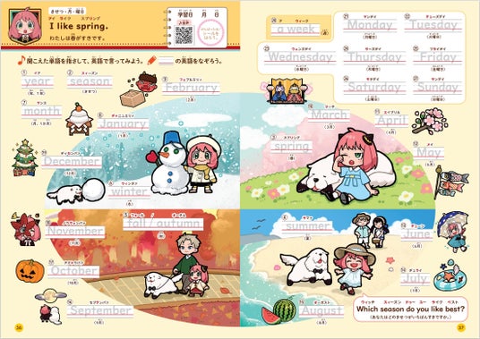 人気まんが『SPY×FAMILY』(遠藤達哉・著/集英社刊)のキャラクター・アーニャと一緒にレッスンできることで大好評の本シリーズ。「はじめてのえいご」「プログラミング」「イラストレッスン」に続き、小学校で必修になった英語学習に着目しました。