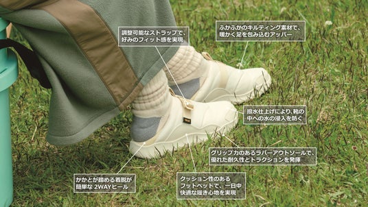 リエンバー キャンプは、暖かさと軽快さ、そして環境へのやさしさを兼ね備えた、寒い季節に頼れる一足です。