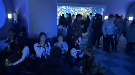 大水槽の前や新江ノ島水族館の名物のクラゲファンタジーホールで、異性との会話を楽しんでいました。薄暗い館内と水槽から差し込む光が、幻想的でムードがあり、参加者の出会いを後押ししていたように感じます。