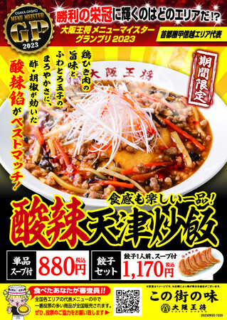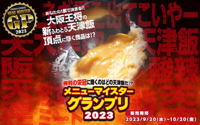 株式会社大阪王将(東京ヘッドオフィス:東京都品川区 代表取締役社長:植月剛)は、餃子専門店「大阪王将」で、2023年9月20日(水)より、大阪王将の“新ふわとろ天津飯”の頂点を決める『大阪王将メニューマイスターグランプリ2023』を開催いたします。