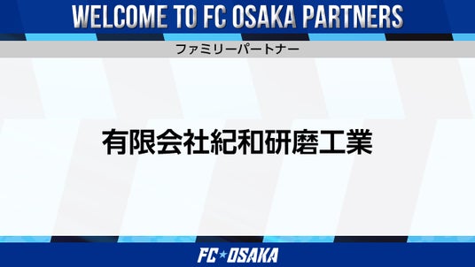 この度、FC大阪ではファミリーパートナーとして、有限会社紀和研磨工業様とパートナー契約を締結いたしましたのでお知らせ致します。