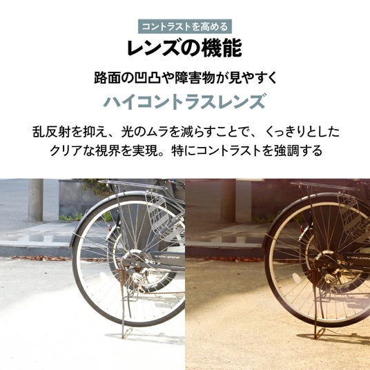 曇天や夕暮れ時でもクリアな視界を確保します。