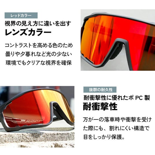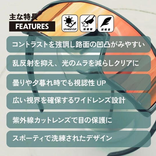 万が一の落車時や衝撃を受けた際にも、割れにくい構造で目をしっかり保護し、