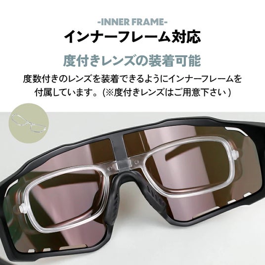 加えて、インナーフレーム対応で度付きレンズの装着も可能です。