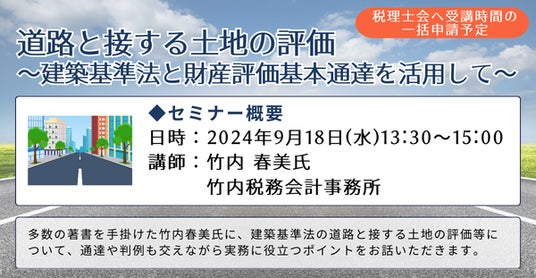 本セミナーでは多数の著書を手掛けた竹内春美氏に、建築基準法の道路と接する土地の評価等について、通達や判例も交えながら実務に役立つポイントをお話いただきます。