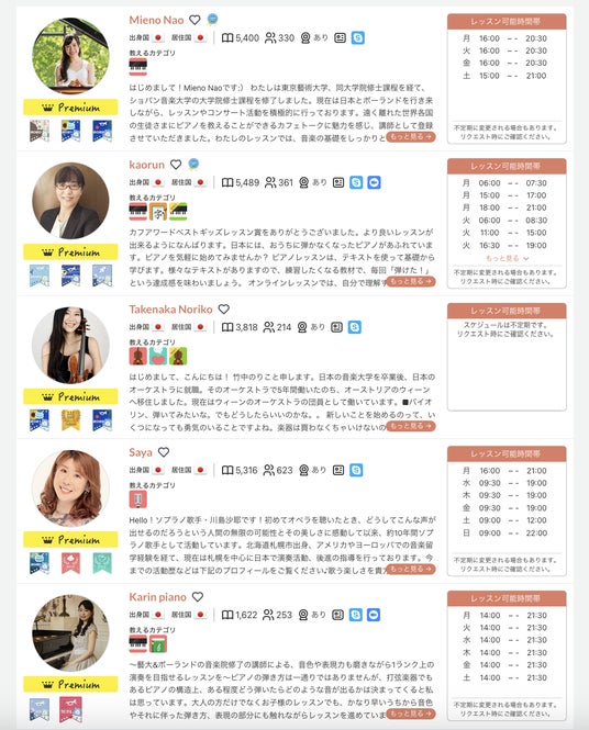 2024年7月現在でアクティブにオンライン音楽レッスンを提供している講師数は225名となります。
