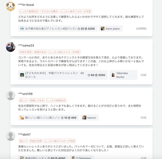 オンライン音楽レッスンの口コミ・評価