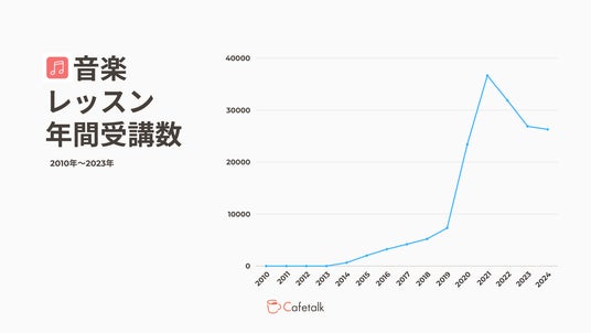 オンライン習い事のカフェトーク 音楽レッスン年間受講数の推移、2024年見込みを含む