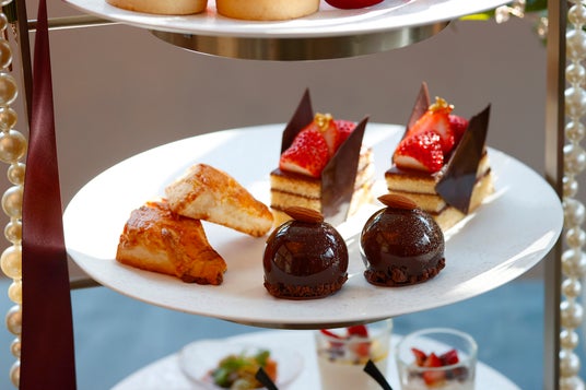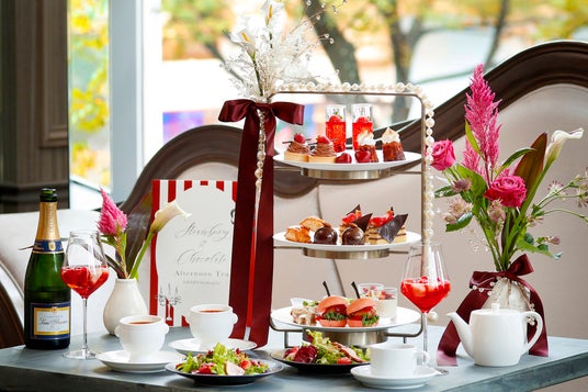 艶めく濃厚なショコラに、旬の真っ赤ないちごが映える華やかなアフタヌーンティーは、上品なパールをまとった冬の装いで登場いたします。