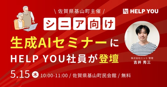 このたび、当社社員である吉井秀三が、令和7年5月15日(木)に佐賀県基山町にて開催される「シニア世代向け生成AI教室」に講師として登壇いたします。本セミナーでは、ChatGPTを始めとした生成AIの概要、日常で役立つことや注意すべきことについての説明、生成AIの体験など、初心者にもわかりやすく解説します。