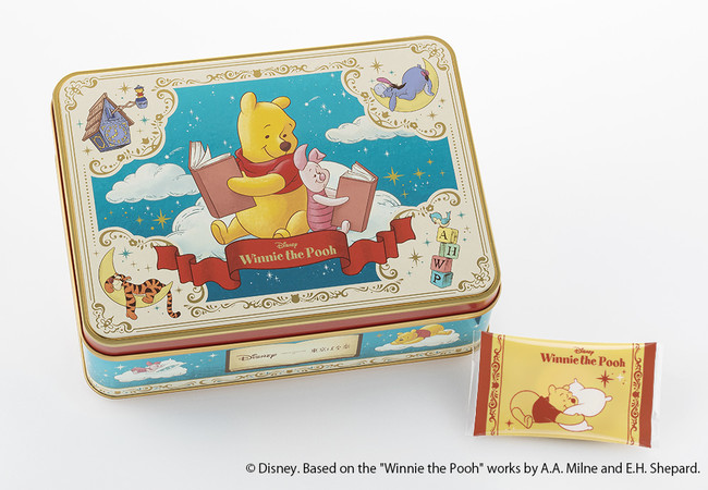 最新作は『くまのプーさん/ショコラサンド「見ぃつけたっ」』。ぐっすり眠った「プーさん」は、夢の中でぷかぷか浮かんだ雲にのって親友「ピグレット」と一緒に読書を楽しんでいるのかも?普段はお調子者の「ティガー」やちょっとのろまな「イーヨー」もぐっすり眠って夢の中。ひろいひろい星空を旅する様子をイメージして描かれたデザインはとっても幻想的!思わずコレクションしたくなるデザインのスペシャル缶に仕上げていますので、食べ終わってからも楽しめます。自分へのとっておきのご褒美に、お友達へのサプライズギフトにも!