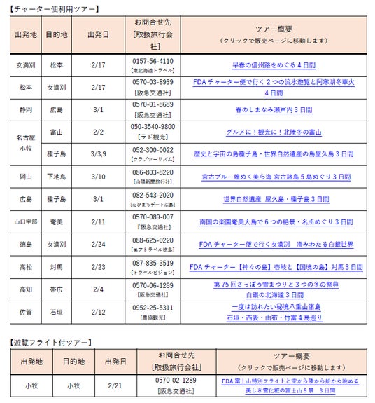現在募集中の、FDAチャーター便を利用した旅行ツアーのご案内です。