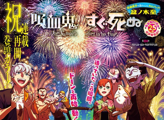 株式会社秋田書店(所在地:東京都文京区、代表取締役社長:山口徳二)は、発行している週刊少年漫画誌『週刊少年チャンピオン』(編集長:松山英生)8月28日(木)発売の39号にて『吸血鬼すぐ死ぬ』の連載再開記念表紙巻頭カラーを実施することをお知らせします。