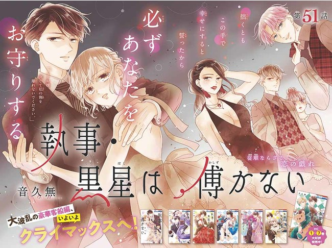 巻頭カラーは「執事・黒星は傅かない」(音久無)が登場です。大波乱の豪華客船編がクライマックス!!