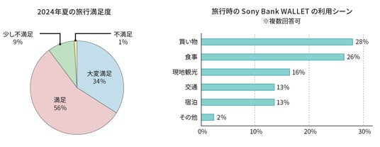 ・90%のかたが、2024年夏の旅行を「満足」と回答。海外旅行に行ったかたの半数以上は現地で Sony Bank WALLET を使用したと回答。