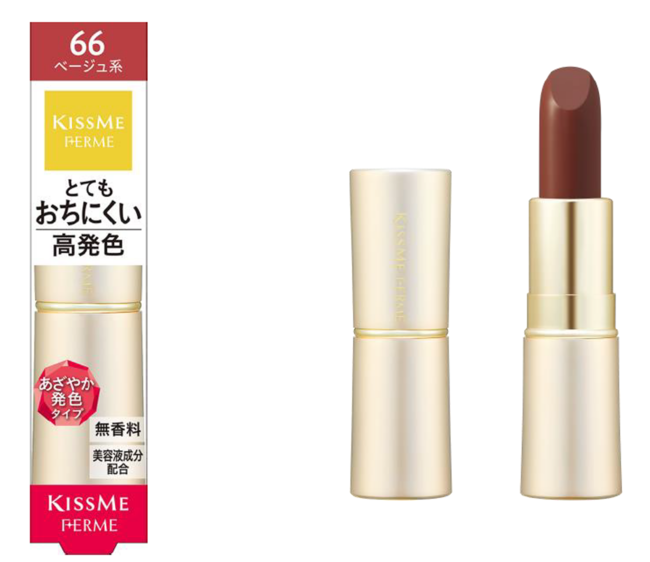 見たまま発色で落ちにくいキスミー フェルムの人気ルージュに、肌なじみよい自然なベージュが新登場。