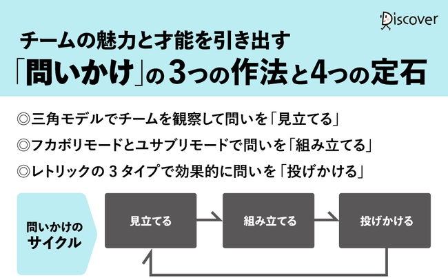 本書では「問いかけ」に必要な要素と工程を分解し、誰にでも実践可能なプロセスに落とし込んだ理論を紹介していきます。