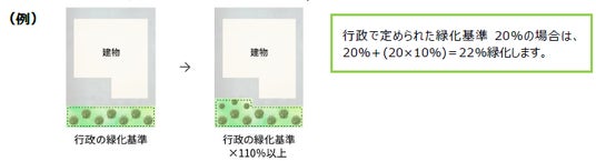 ※3: 行政で定められた緑化基準が20%の場合は、20%+(20×10%)=22%となります。