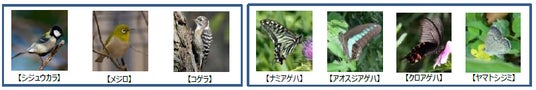 【本取り組み(Link NATURE Action)により、飛来が期待される鳥や蝶の一例】