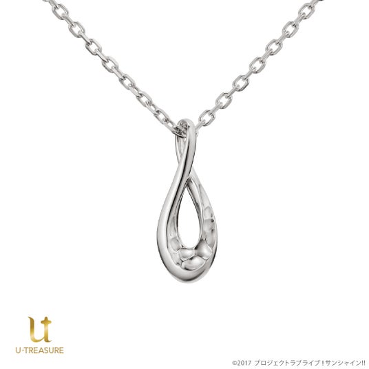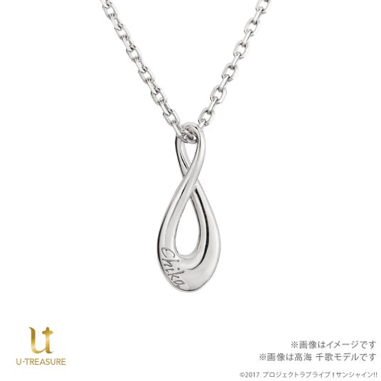 このたびの新作は、『ラブライブ!サンシャイン』Aqours9周年を記念したネックレスです。選んだメンバーの名前を刻印できるデザインで、「水」と「無限の時間(∞:インフィニティ)」をイメージしました。
