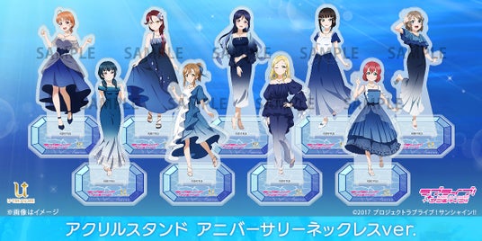 『ラブライブ!サンシャイン!!』とコラボレーションした、「アクリルスタンド アニバーサリーネックレスver.」「カード型アクリルスタンド アニバーサリーネックレスver.」も同期間中(2025年2月14日(金)~3月19日(水))予約を受け付けております。