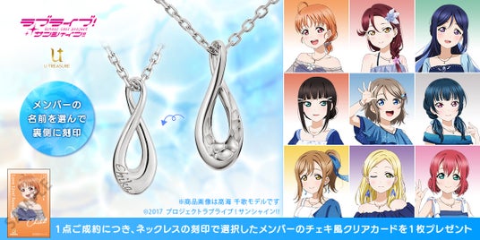 「ラブライブ!サンシャイン!! アニバーサリーネックレス」が首元に輝く、特別な衣装の描き下ろしイラストを使用した『チェキ風クリアカード(非売品)』をネックレスを1点ご成約につき1点プレゼントいたします。(ネックレスの刻印で選択したメンバーのデザインになります)