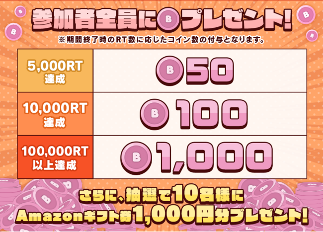 超バズれ! Twitter連動でRT数に応じて参加者全員にコインプレゼント!
