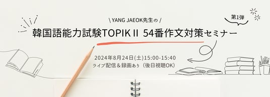 世界90カ国からの講師と、130カ国からレッスンを探す生徒をつなぐ日本最大級オンライン習い事サイト「カフェトーク(https://cafetalk.com/ )」を運営する株式会社スモールブリッジ(本社:東京都渋谷区、代表取締役:橋爪小太郎)は、2024年8月24日(土)韓国語能力試験TOPIKII 54番作文対策セミナー第1弾をオンラインで開催します。
