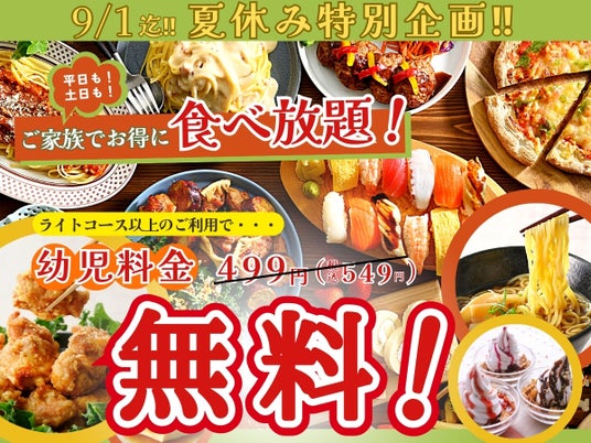 ぜひ残り少ない夏休みに、ご家族でリーズナブルに!お得に食べ放題をお楽しみください。