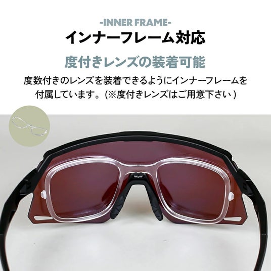 加えて、インナーフレーム対応で度付きレンズの装着も可能です。