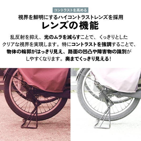 視界を鮮明にするハイコントラストレンズを採用し、乱反射を抑え、