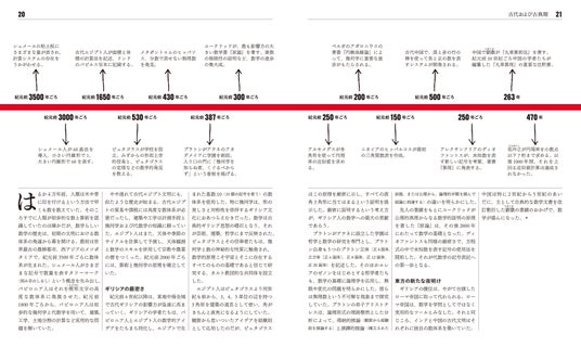 大図鑑という名前どおり、純粋数学から応用数学まで、古今東西のあらゆる話題が網羅されている。昔の人は(現代人と比べて)少ない知識で工夫しながら数学の問題を解いていた。そんな歴史をたどることで、改めて数学の奥深さが堪能できる。