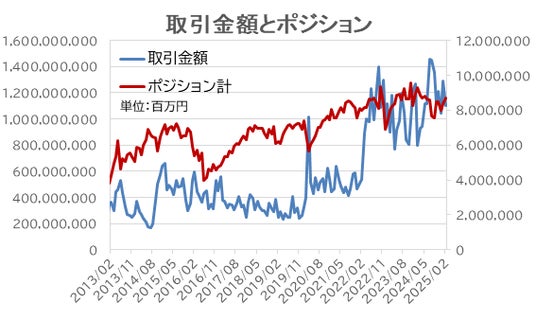 金融先物取引業協会が3月14日に公表した資料によると、2025年2月の店頭FXにおける取引金額は1099兆円と、1月の1292兆円から約14.9%減少した。主要取引通貨ペアであるUSD/JPY(米ドル/円)の取引量が約15.6%減少したことが影響した。一方、月末時点の未決済ポジション合計は約8.7兆円と前月から3.8%増加した。